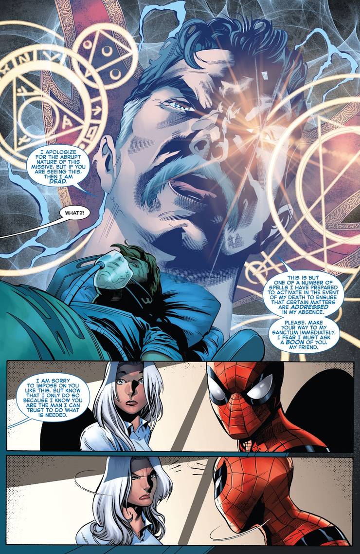 During the Fatality of Doctor Strange occasion, Medical professional Strange has actually certainly been eliminated, executed by an unknown magic-wielding aggressor. Without a Sorcerer Supreme to protect the Earth, the world is right away endangered by multiple hostile wonderful animals and also conquerers, each of whom are no longer barred from access many thanks to the lack of Unusual and also his safety magic. Unusual demands help - and he discovers it in the type of Spider-Man as well as Black Pet Cat. Regrettably, the Spider-Man isn't Peter Parker.